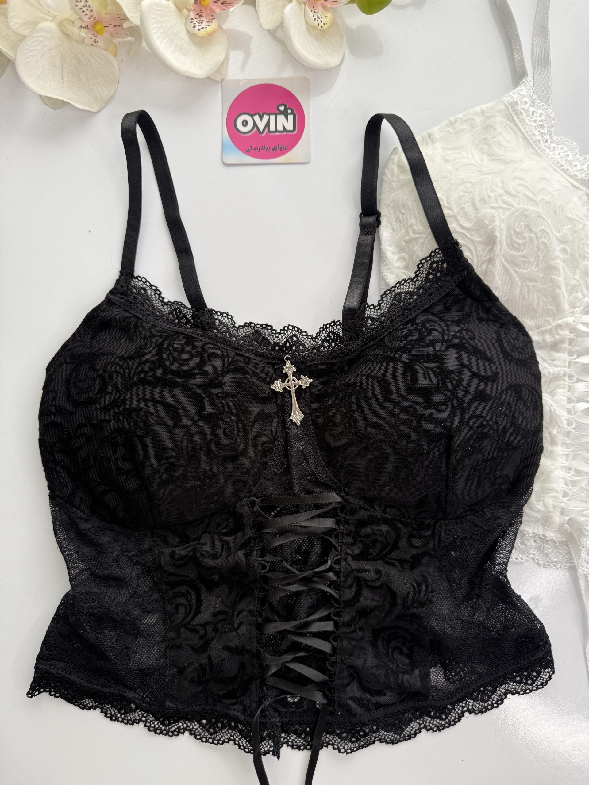 پایین و بالای سینه دانتل کار شده 🥹🎀